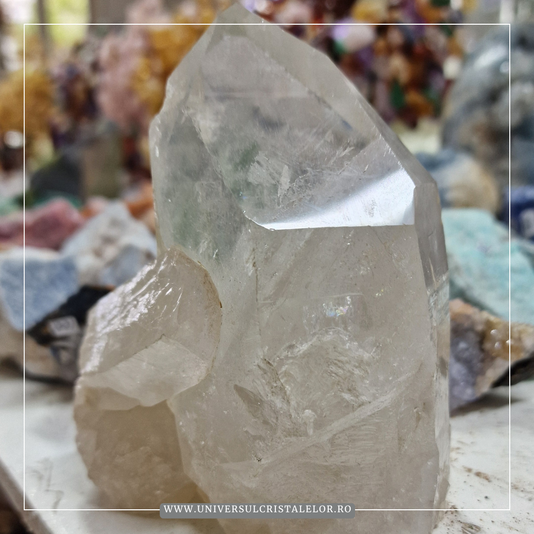 ⁕ Deși este un cristal pasiv, cuartul transparent are o forță subtilă de protecție. El reflectă energiile negative și ajută la stabilizarea câmpului energetic personal, fiind ideal pentru purtare zilnică sau plasare în locuință.
