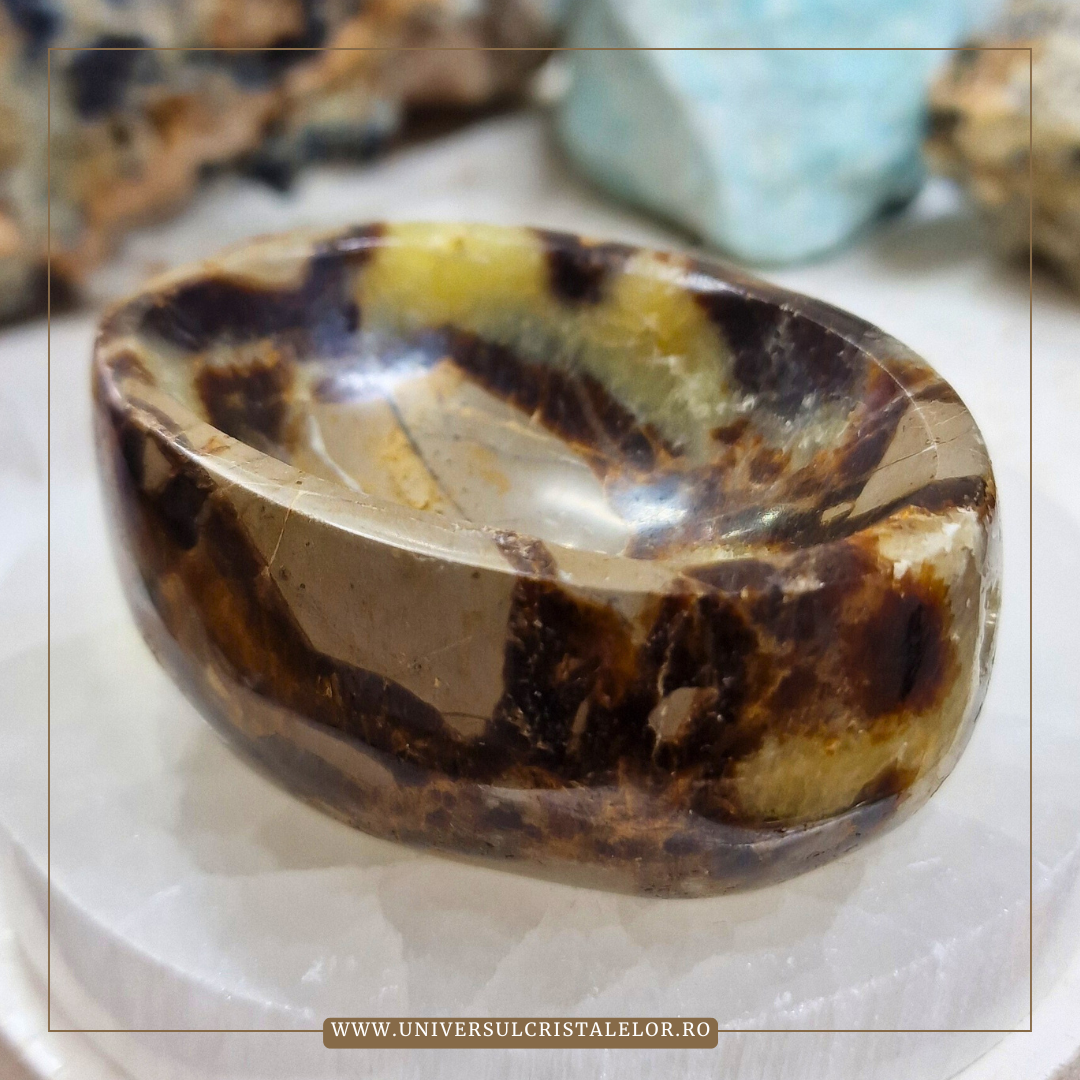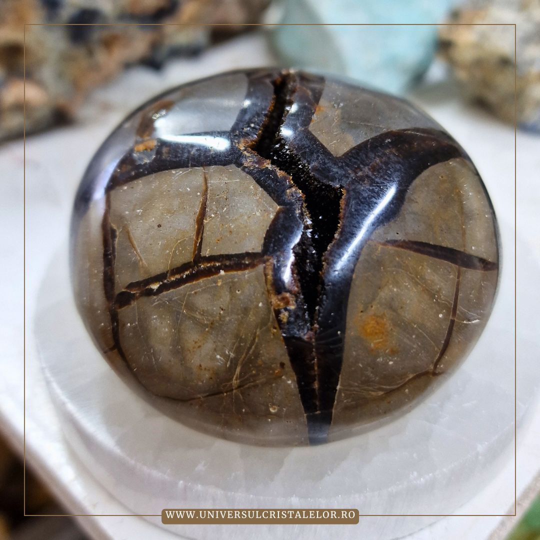 Septaria este o bijuterie minerală a naturii, un portal spre adâncurile propriei ființe. Prin aspectul său care amintește de scoarța pământului și energia sa profundă, această piatră ne învață să ne ascultăm vocea interioară, să ne ancorăm în prezent și să ne vindecăm trecutul. Purtata ca talisman, folosita în meditație sau pastrata ca obiect decorativ, Septaria este un tovarăș tăcut, dar plin de înțelepciune.
